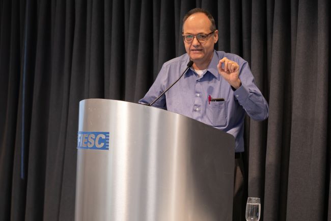 Florianópolis, 30.10.2024 - O economista e professor do IBRE-FGV, Samuel Pessôa, acredita que sem medidas de ajuste fiscal a dívida pública do país vai subir 14 pontos percentuais até 2027, alcançando 86% do PIB brasileiro. “A trajetória da dívida pública é insustentável. Vai passar de 72% do PIB para até 86% do PIB, inviabilizando a capacidade de investimento”.