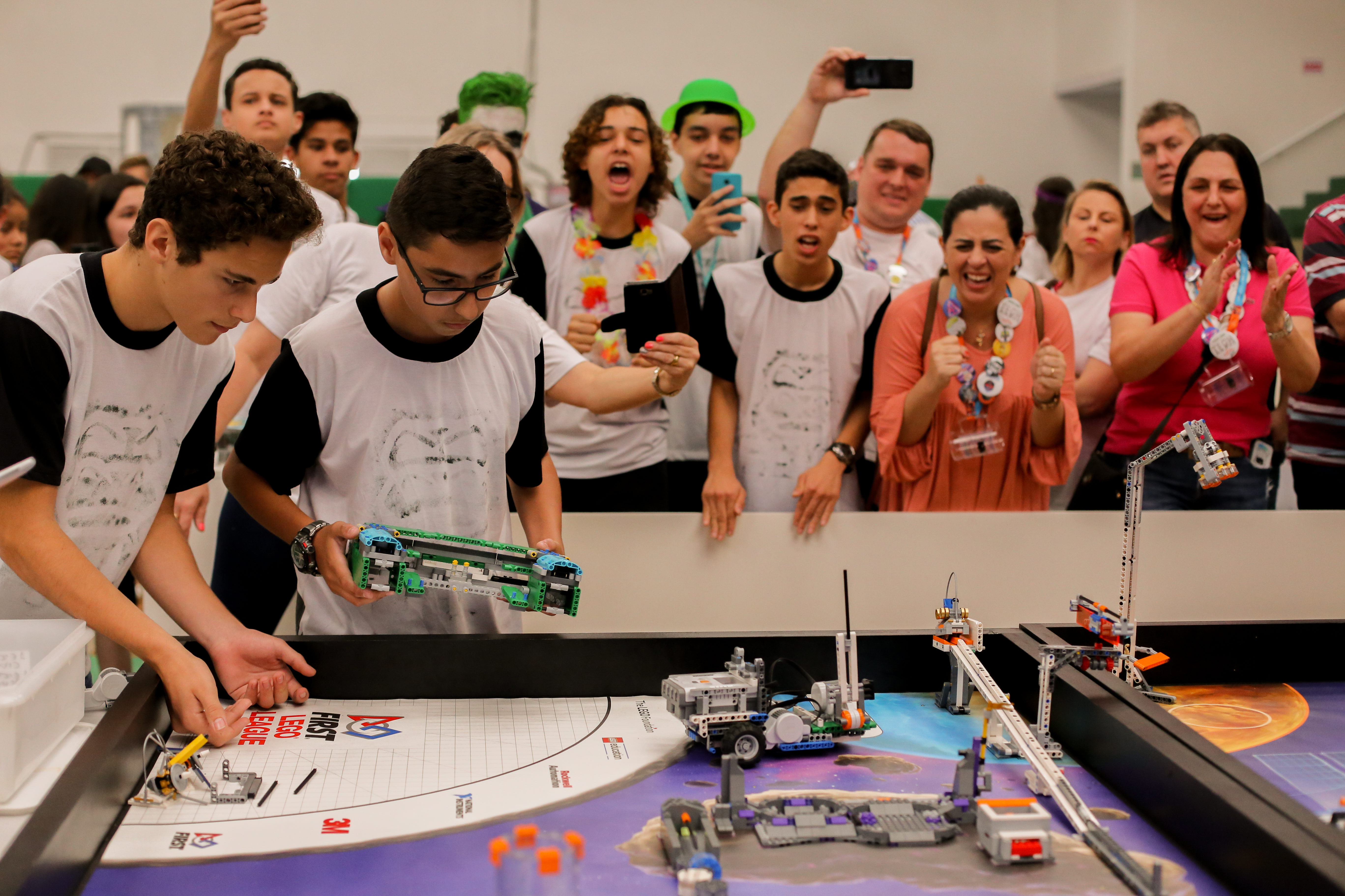 Rio do Sul, 19.10.2018 – Uma das tarefas dos participantes do Torneio de Robótica FIRST LEGO League é a elaboração de um projeto de pesquisa com o tema INTO ORBIT (Em órbita). As 49 equipes que disputam o torneio levantaram problemas que os astronautas podem enfrentar no espaço e criaram projetos de pesquisa para solucionar as dificuldades. As melhores ideias serão conhecidas amanhã (20), no final da competição que integra a programação do evento Universo #VemFazerSESI, que a entidade realiza em Rio do Sul.