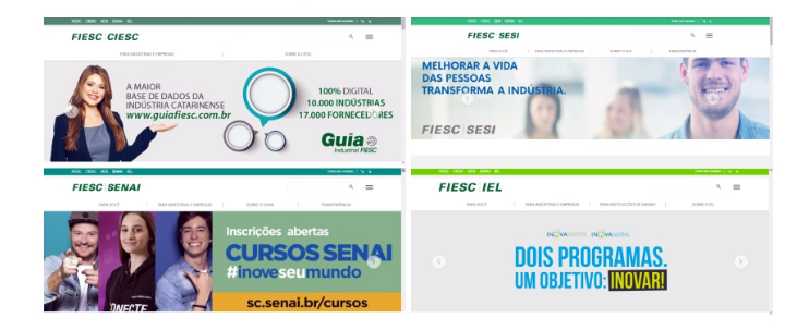 Florianópolis, 8.2.2018 – A partir desta quinta-feira (8), a FIESC e suas entidades (CIESC, SESI, SENAI e IEL) estreiam novos sites. As mudanças tornam a navegação mais intuitiva, trazem as informações mais organizadas e facilitam o acesso dos usuários aos dados e aos produtos e serviços. Para a construção das novas plataformas foram realizadas pesquisas sobre a experiência dos usuários e suas necessidades, levantamento de perfil de comportamento do público e estudo de tendências e possibilidades tecnológicas.