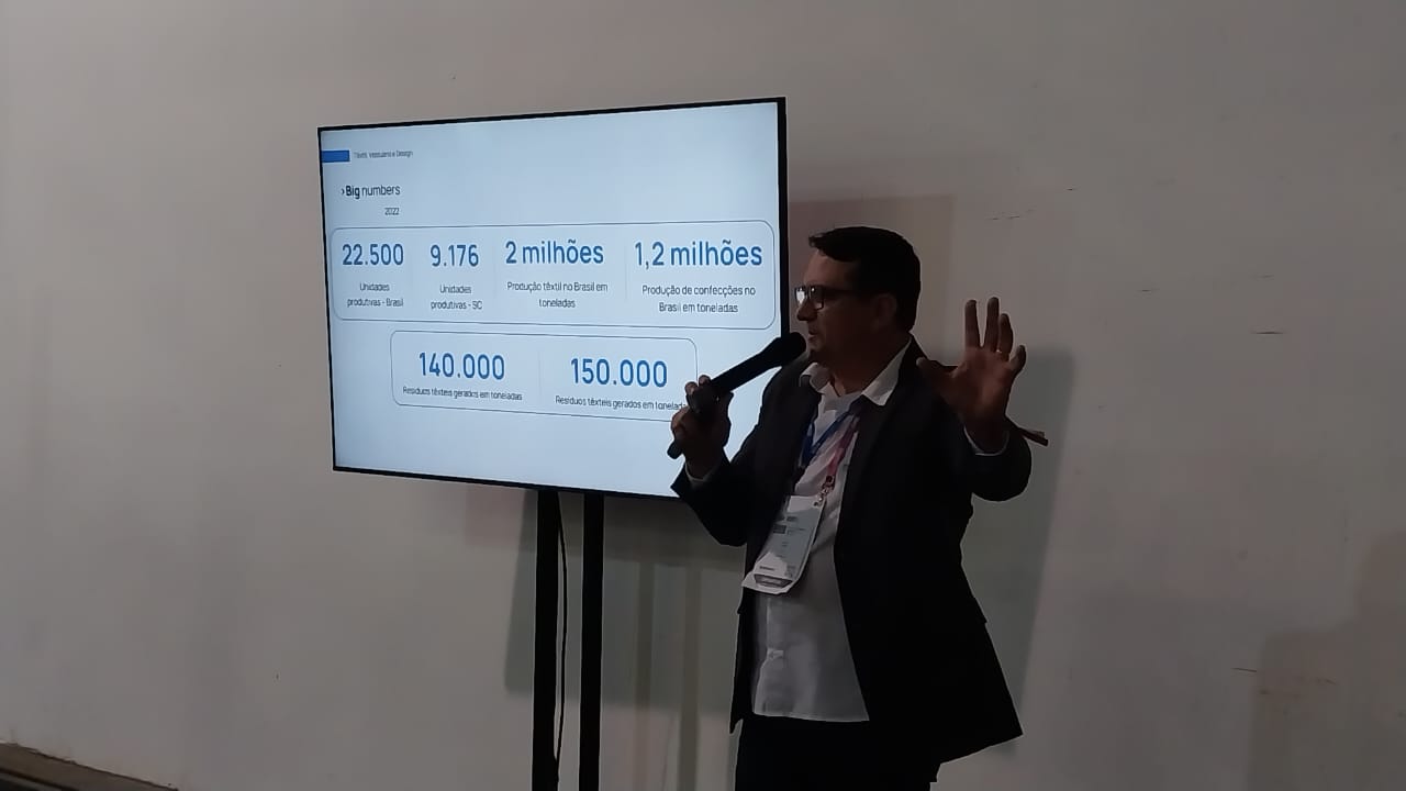 No segundo talk comandado pelo SENAI, o coordenador do Instituto SENAI de Tecnologia em Têxtil, Vestuário e Design, Jairo Dias, falou sobre a importância e as dificuldades de migrar o modelo de produção atual de linear para circular, otimizando a gestão de resíduos têxteis. Um dos pontos críticos, inclusive, é a gestão de resíduos do “final do ciclo de vida”, ou seja, de peças confeccionadas, usadas e descartadas.
